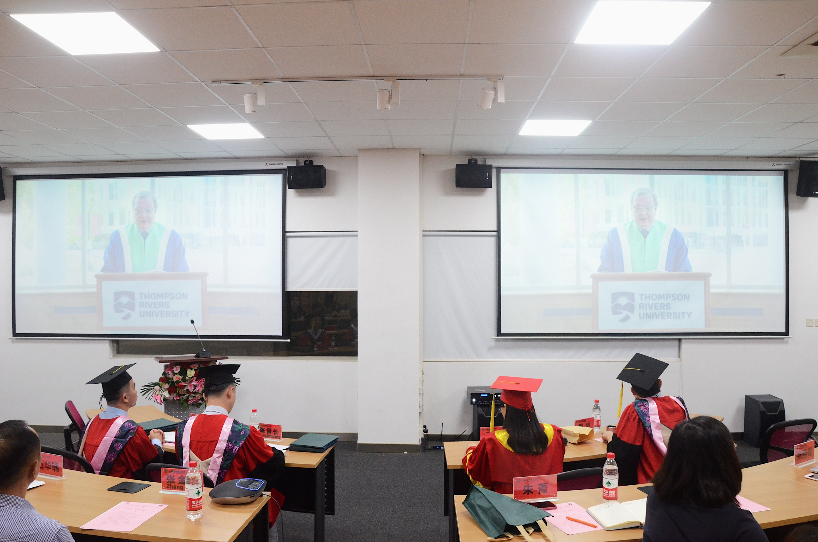 加拿大汤姆逊大学校长Brett Fairbairn教授通过视频为毕业生送上祝福,寄语毕业生要秉承学习精神,相信知识改变命运。要践行终身学习,以此应对快速的社会与经济发展。