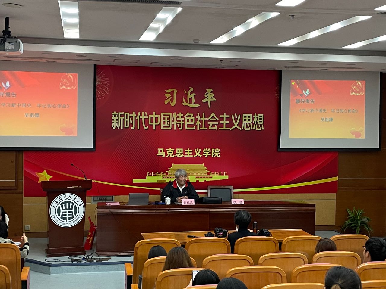 结业典礼结束后,学院邀请上海百老德育讲师团讲师吴祖德作报告,全体培训班成员参加了报告会。吴祖德以“为什么要学习新中国史”为切入点,指出学习新中国使可以把新中国取得的成就及经验运用到治国理政中,从而知史明智、知史担责、以史见金、以史资政。