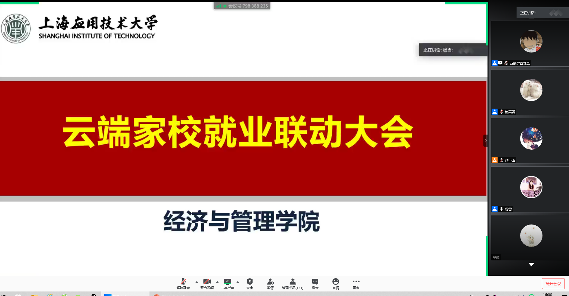 6月1日、6月3日、6月6日,经管学院按照专业,根据学生“一生一策”要求及就业进度具体情况,分场次、分主题召开线上班会、家校联动大会,充分发动各方资源,推动学生就业的主动性和积极性,家校联合促进学生就业。多场次的线上家校联动大会共有毕业生、家长近千人次参加。