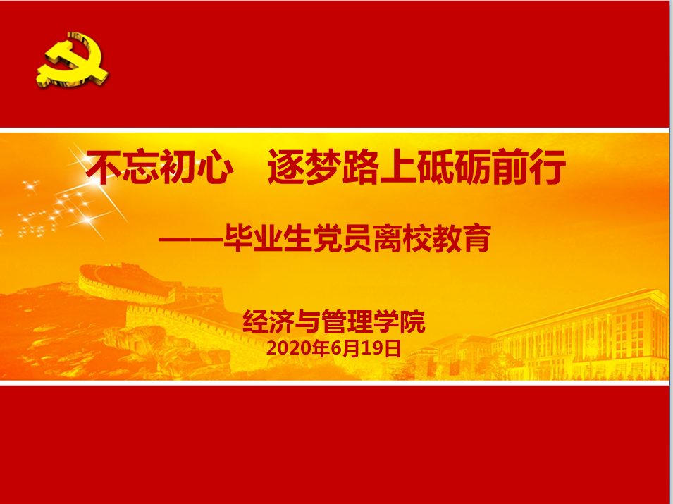 通过线下线上结合的方式,毕业生党员重温入党誓词、开展主题党日活动、递交毕业生党员“表白”书、为身边的同学做一件好事等形式,让他们体验到身为党的一份子所具有的责任与使命。