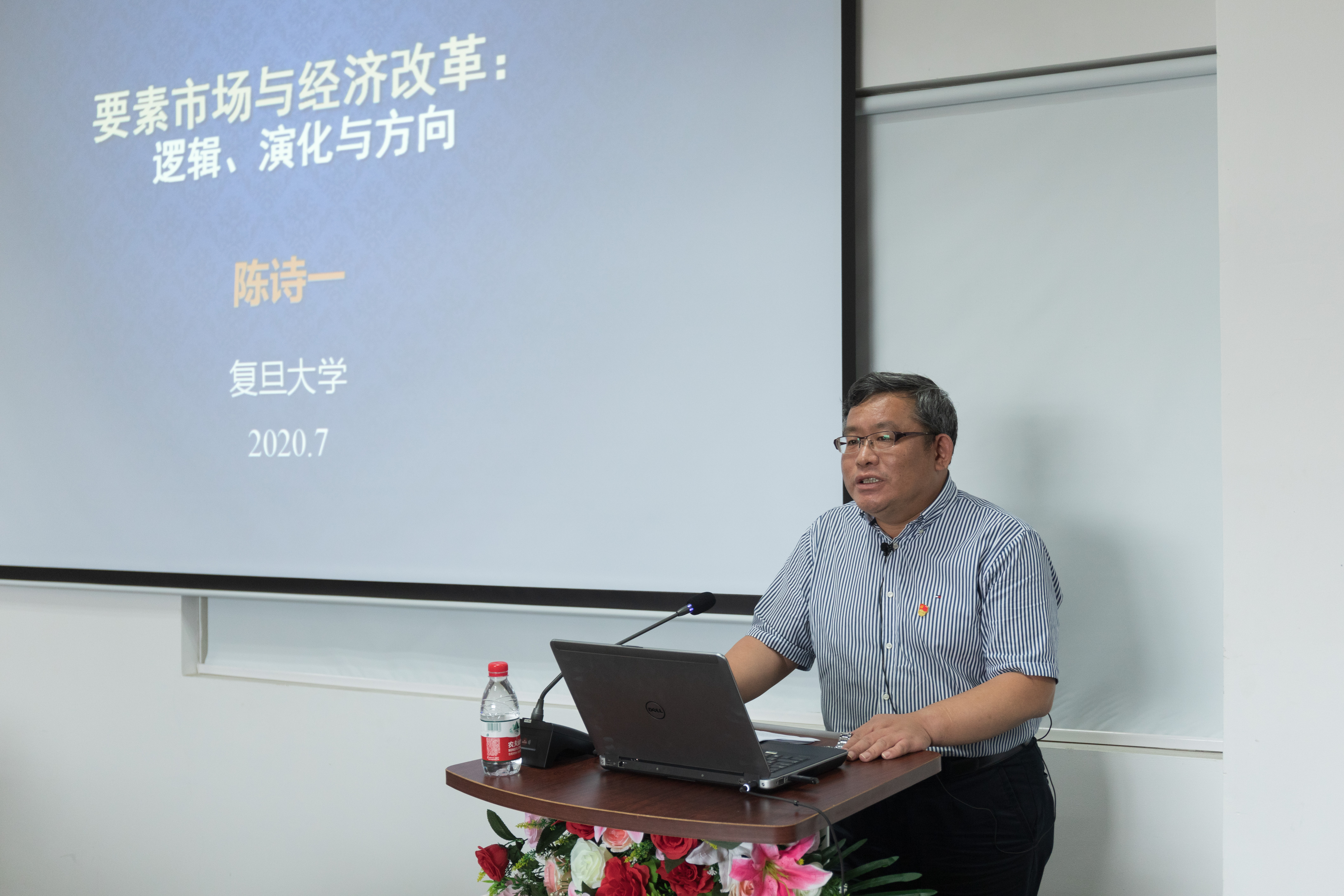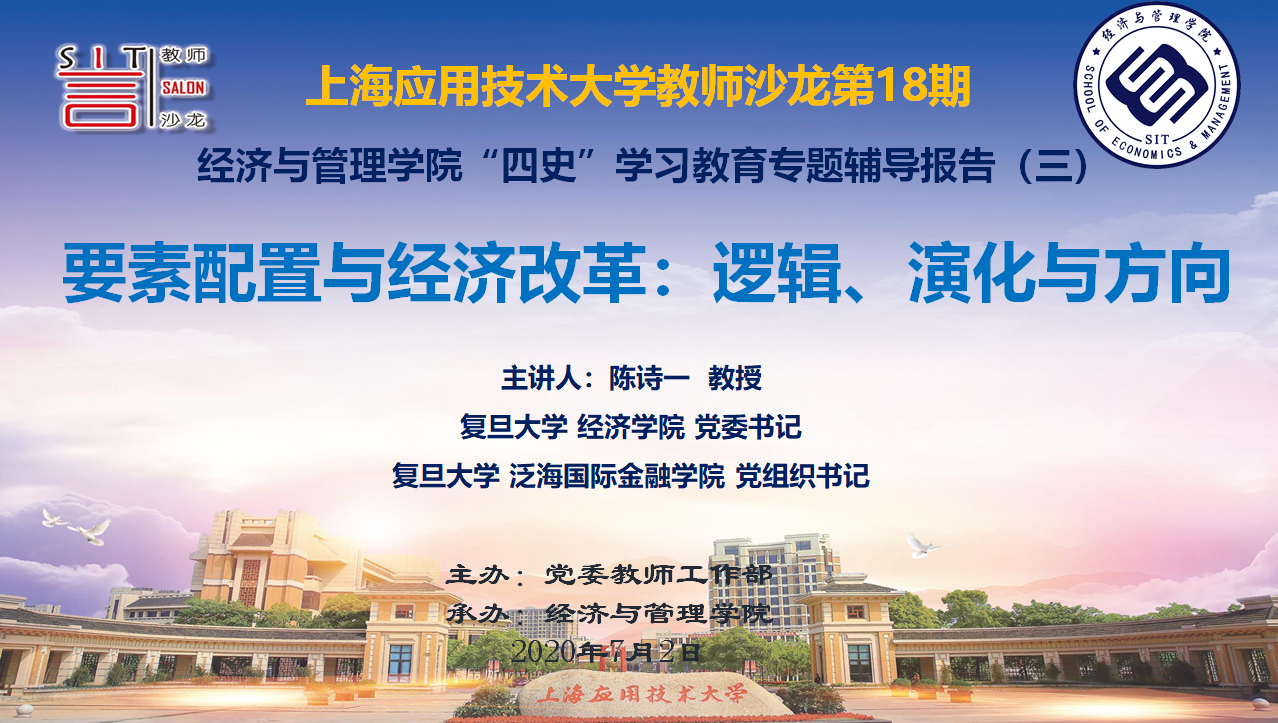7月2日下午,经管学院在第五学科楼B408承办学校第18期教师沙龙,邀请国家杰出青年科学基金获得者、上海市领军人才、复旦大学经济学院党委书记、复旦大学泛海国际金融学院党组织书记、复旦大学可持续发展研究中心主任陈诗一教授作《要素市场与经济改革:逻辑、演化与方向》的专题辅导报告。陈诗一先后荣获中国经济学最高奖——孙冶方经济科学奖及张培刚发展经济学奖、刘诗白经济学奖。此次沙龙采取线上线下相结合的方式举办,校党委教师工作部相关负责人、经管学院领导班子成员、支部书记及部分专业教师参加了现场报告会。院党委书记王真主持会议。
