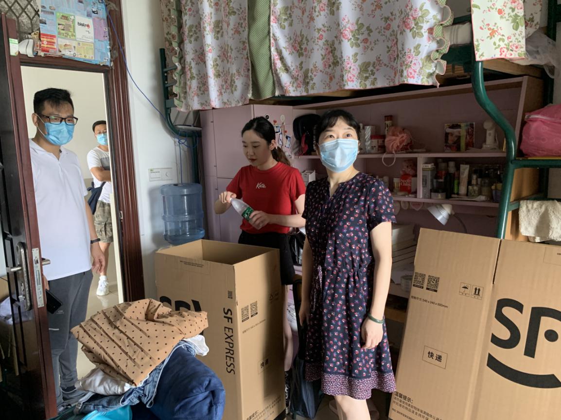 学院领导带队到宿舍,在学工部就业指导服务中心的支持下,协助学生打包行李,及时解决突发的问题和困难,从细节入手,努力做到暖心相待,用心服务,炎炎夏日为经管毕业学子带来清凉和便利。
