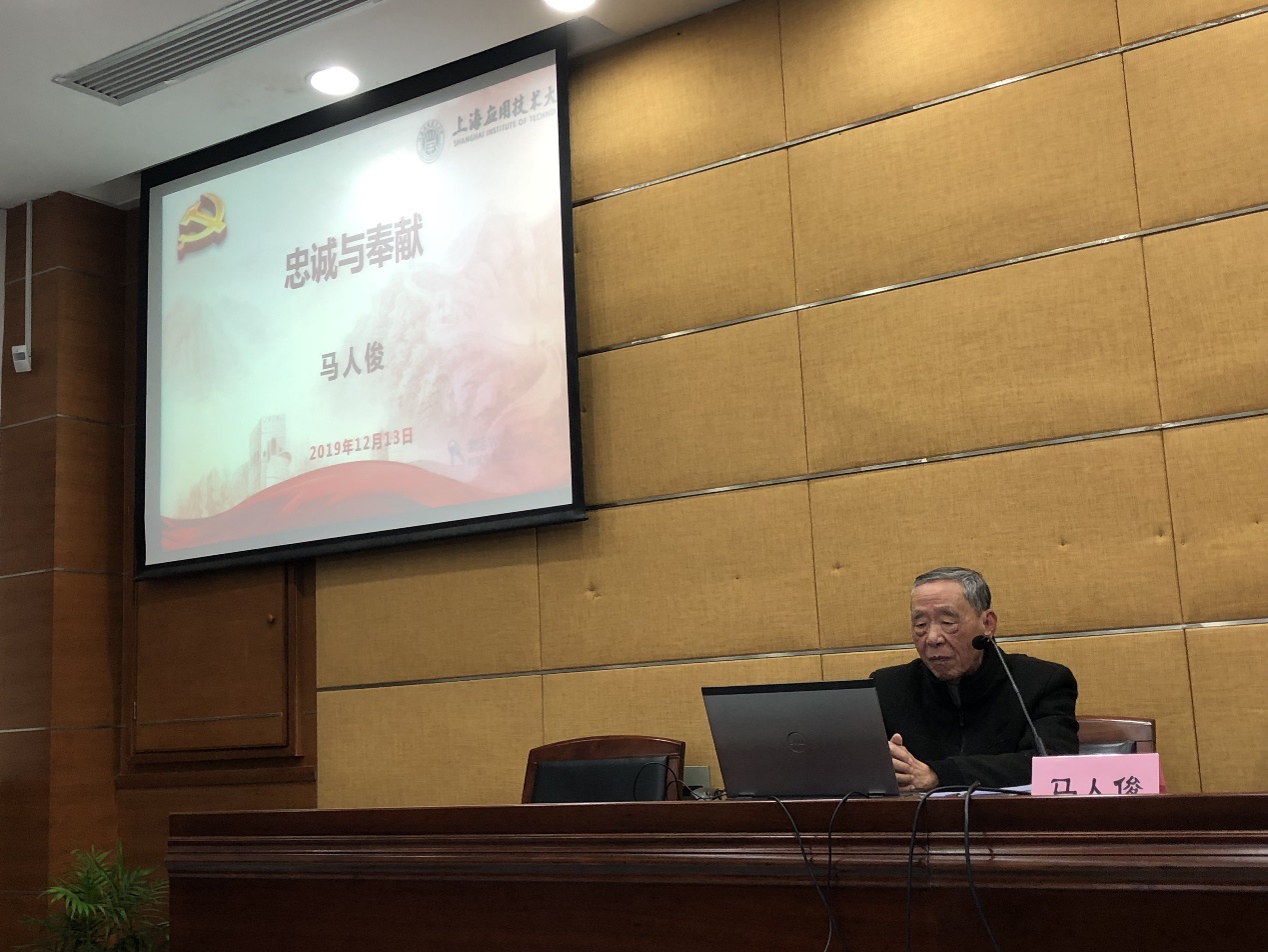 结业典礼结束后,学院邀请全国劳动模范、全国公安一级英模马人俊同志作报告。马人俊同志用最朴素的语言讲述着他的所做、所思、所感。1950年-1966年马老在上海市闸北公安分局指江庙路派出所任民警期间,以为人民服务为工作宗旨,侦破了偷盗六百两黄金的大案,查获各类政治、刑事案件67起,于1956年被中央公安部授予全国公安一级英模的荣誉称号。由于他乐于为民做好事,千方百计为大家排忧解难,不计个人得失,得到公众的赞誉,是电影《今天我休息》中的主人翁马天民的原形。同学们纷纷表示要学习和继承好马老的全心全意为人民的精神,担负起对社会、对国家的责任。