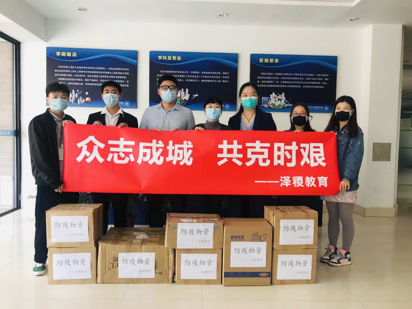 5月8日,上海泽稷教育培训有限公司副总裁吴世浩、区域总监陈亚成、市场经理徐伟,来到经济与管理学院,将多方筹集的防疫物资亲自交到了学院工作人员手中。吴世浩代表公司捐赠向经管学院了高浓度84消毒液、洗手凝胶、消毒湿巾、医用口罩等防疫物资。