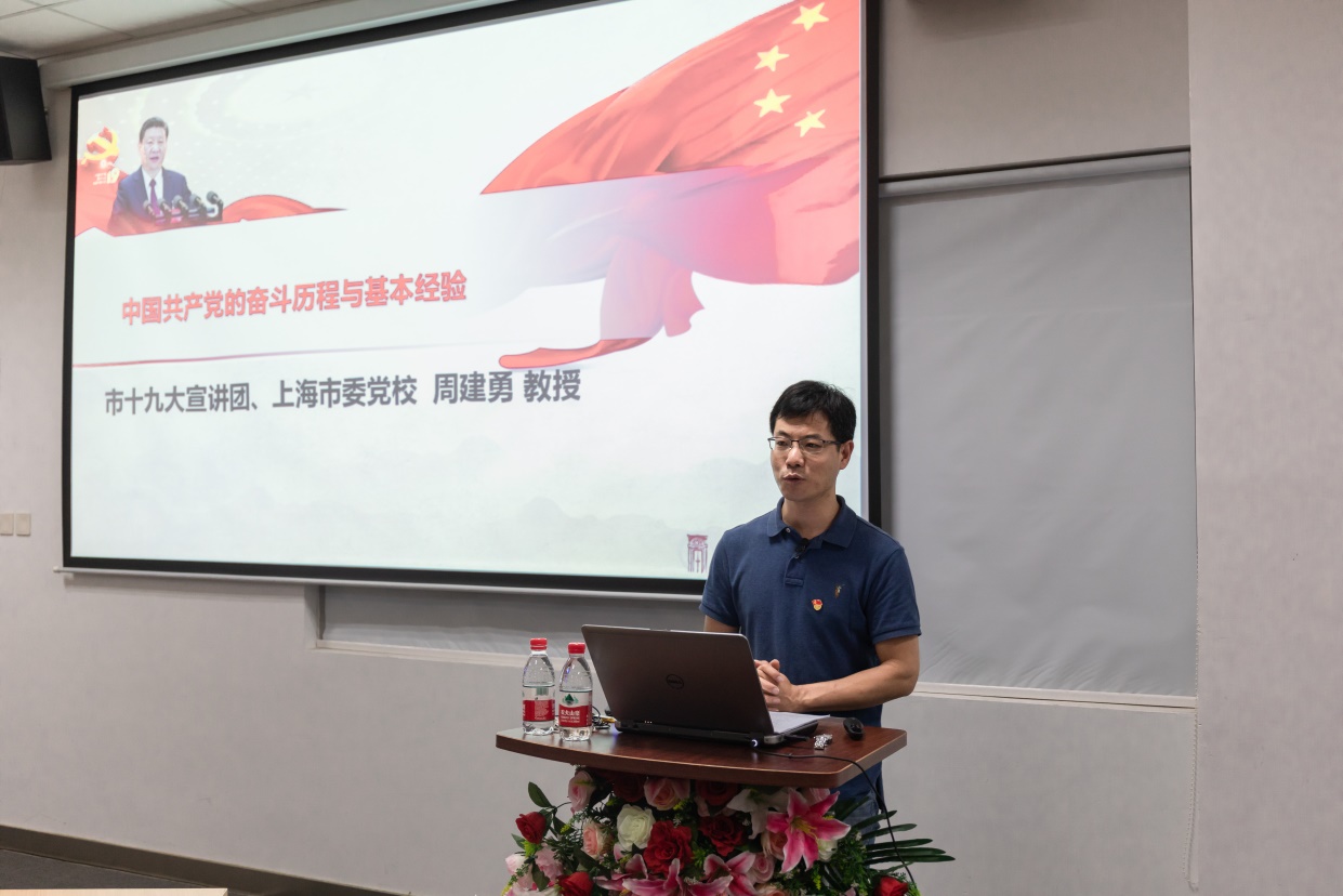 6月4日下午,经管学院在第五学科楼B408举办“四史”学习教育动员大会暨专题辅导报告,邀请中共上海市委党校中外政党比较研究中心主任周建勇教授作《中国共产党的奋斗历程与经验启示》的专题辅导报告。经管学院领导班子成员、总支委员、支部书记及部分教师党员参加现场报告会,其余教师党员和全体学生党员、入党积极分子等参加线上会议。院党委书记王真主持会议。