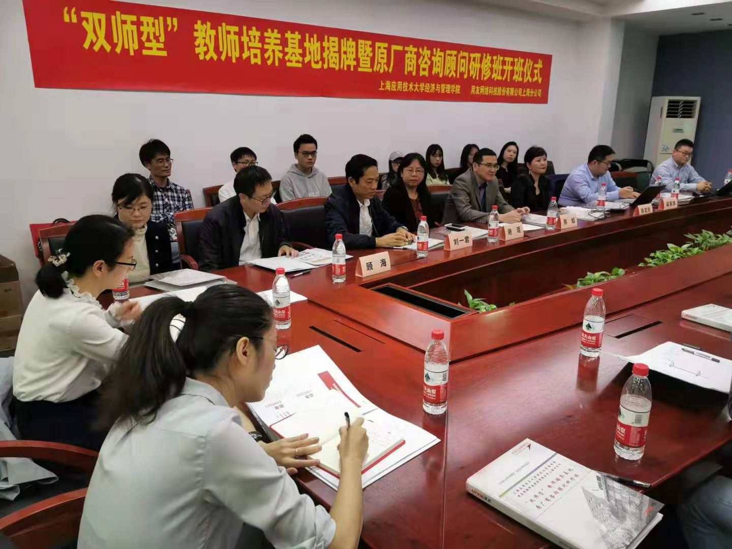 为全面贯彻落实《中共中央国务院关于全面深化新时代教师队伍建设改革的意见》,共建“双师型”教师培养培训基地,11月2日,经管学院与用友软件股份有限公司上海分公司共同举行了“双师型”教师培养基地揭牌暨开班仪式。经管学院院长熊焰,用友集团上海分公司副总熊奕玲、高级专家戚家朋,以及管理科学与工程系、会计系师生约40人参加了当天的揭牌及开班仪式。