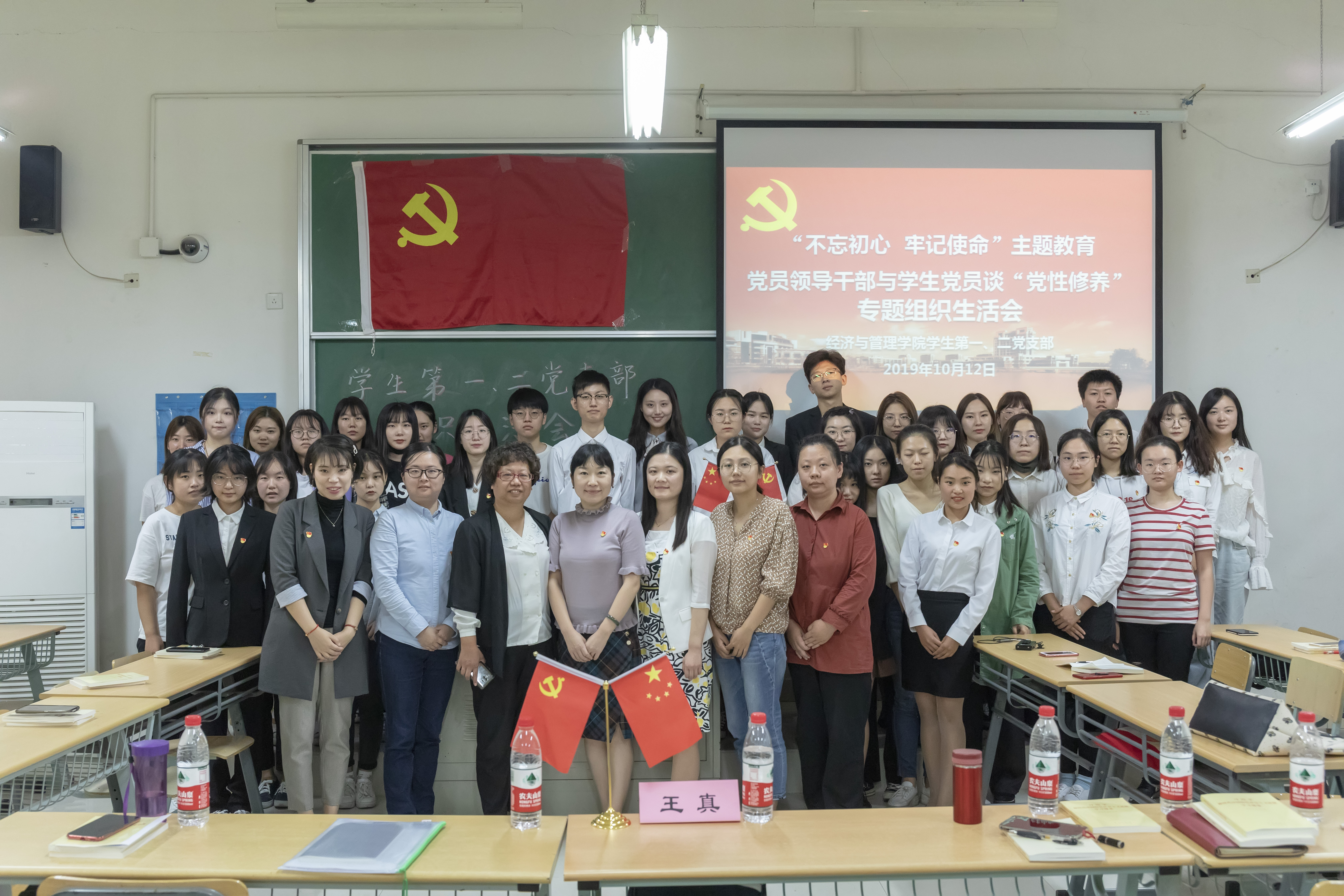 10月12日下午,经管学院学生第一、二党支部联合举行了“不忘初心,牢记使命”主题教育之“党性修养”专题组织生活会,会上聚焦“党性修养”专题开展集中学习研讨。经管学院党总支书记王真,学校主题教育第四巡回指导组副组长蔡蕍应邀参加。学生第二党支部书记戴舢舢主持会议,两个支部40多名师生党员参加了此次组织生活会。