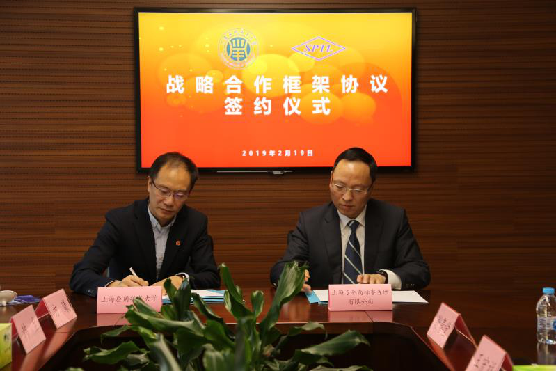 最后,毛祥东副校长、王宏祥总经理分别代表双方签订了上海应用技术大学和上海市专利商标事务所有限公司战略合作协议。