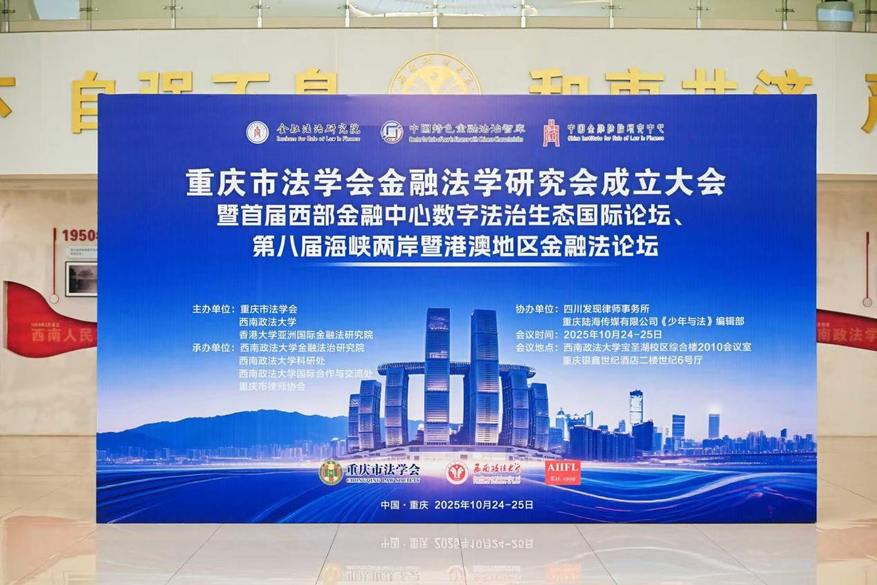 2025年10月24~25日,“首届西部金融中心数字法治生态国际论坛暨第八届海峡两岸及港澳金融法论坛”在西南政法大学举行。大会由重庆市法学会、西南政法大学、香港大学亚洲国际金融法学研究院联合主办,围绕“数字变革·法治赋能——数字时代西部金融中心法治生态建设”主题,吸引了两岸及港澳地区高校、司法机关与金融监管机构的专家学者深入交流。